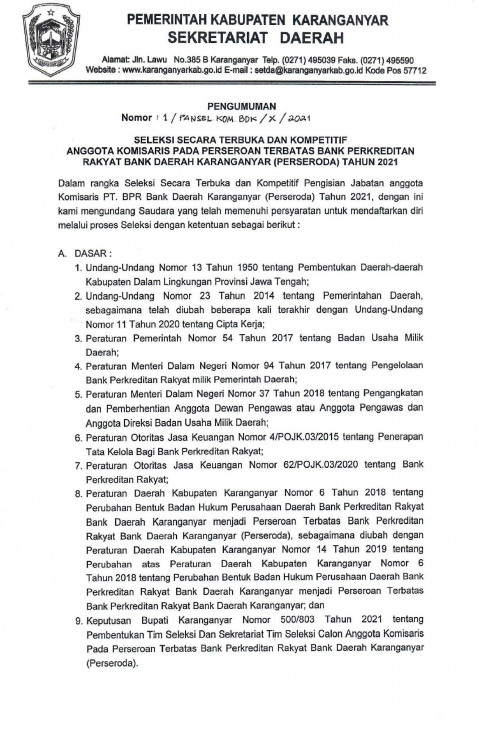 Download pengumuman beserta lampiran lengkap