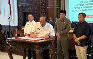 Penyusunan Rancangan Awal RPJMD ini telah melalui berbagai tahapan, mulai dari rancangan teknokratis, pelaksanaan konsultasi publik, menganalisa kondisi daerah, perumusan isu-isu strategis, serta penjaringan aspirasi masyarakat. Hari ini, melalui penandatanganan nota kesepakatan ini, kita menegaskan sinergi dan kolaborasi antara Pemerintah Daerah, DPRD dan seluruh skateholder terkait, untuk menyatukan visi dalam membangun daerah guna mewujudkan Karanganyar yang berintegritas, berdaya saing dan sejahtera.