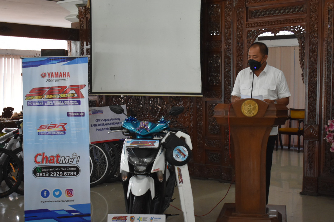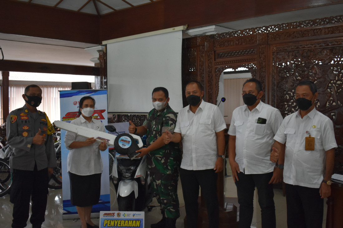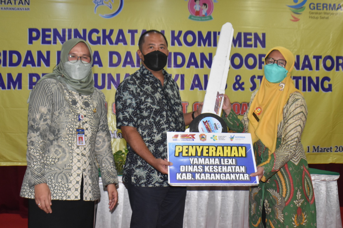 Bupati Karanganyar secara simbolis memberikan sepeda motor sebagai fasilitas kepada Bidan Desa.