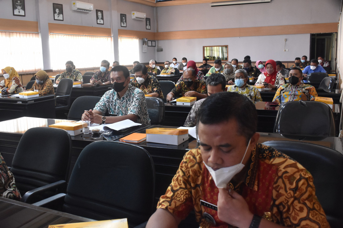 Segenap jajaran Kepala OPD, Camat se Kabupaten Karanganyar ikuti Rakor Pemberantasan Tipikor secara virtual di rung Podang I Sekretariat Daerah Karanganyar