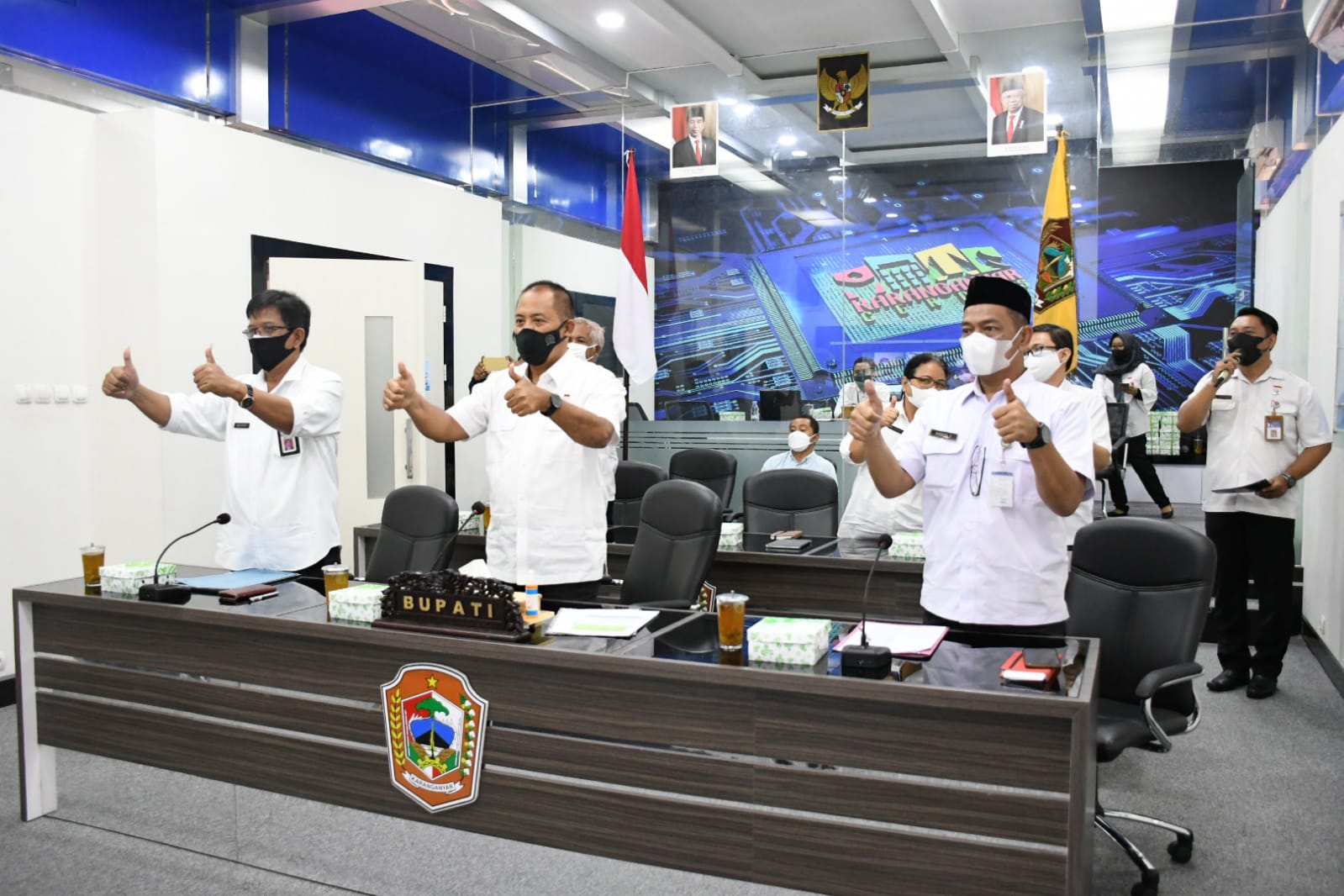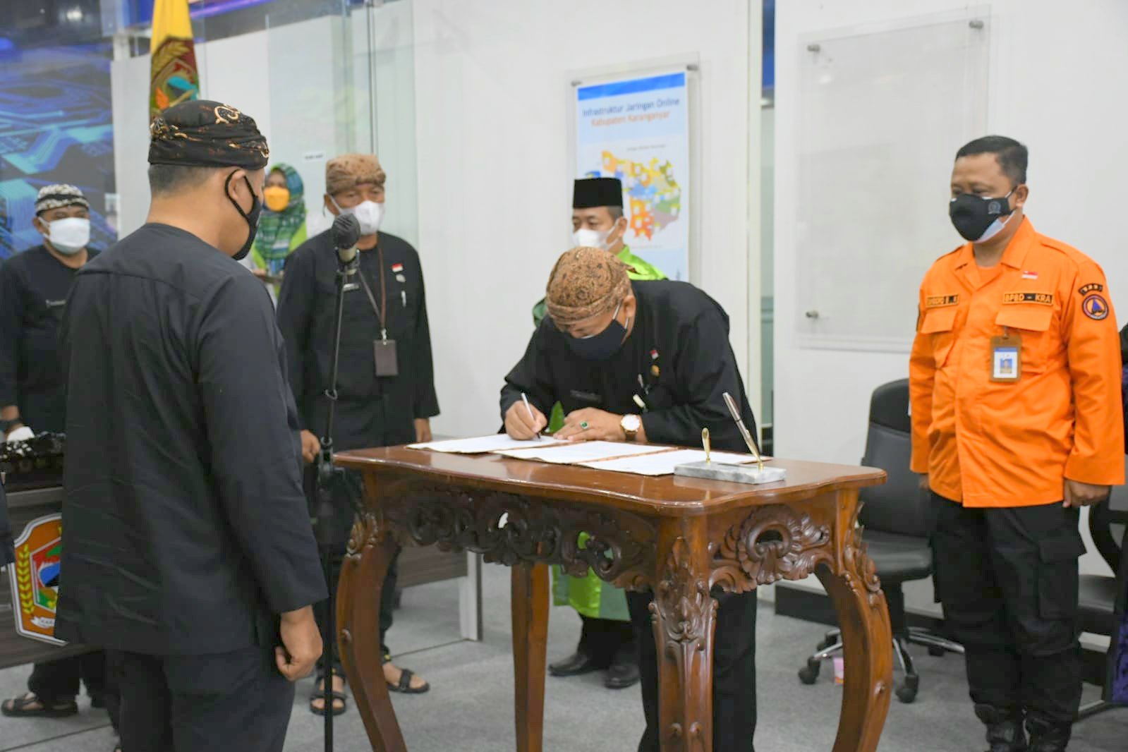 Bertempat di SIC Sambernyawa DISKOMINFO Kab. Karanganyar, Bupati Juliyatmono mengadakan pelantikan dan pengambilan sumpah/janji secara langsung kepada Pejabat Esselon II dan secara virtual kepada Pejabat Esselon III dan IV.