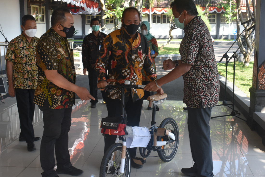 Dalam kesempatan ini Bupati dan Wakil Bupati Karanganyar memberikan kenang-kenangan simbolis berupa sepeda kepada Bapak Agus Cipto Waluyo, S.H.M.T dan Agustinus Joko I, S.Sos.