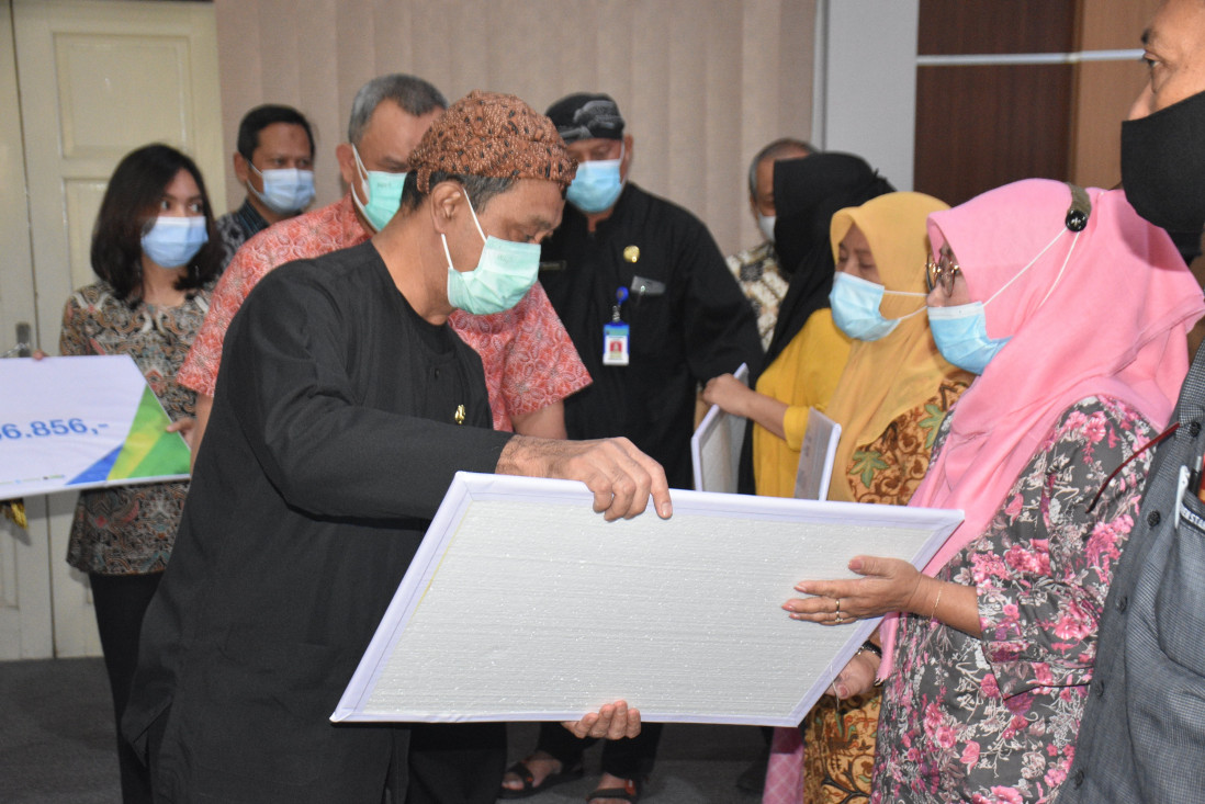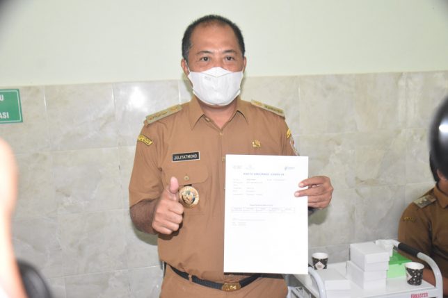 - Bupati Karanganyar, Juliyatmono menerima vandel dari BPIP pada saat peletakan batu pertama pembangunan Masjid Luthi Al Mukhlisin di Desa Bolon, Kecamatan Colomadu