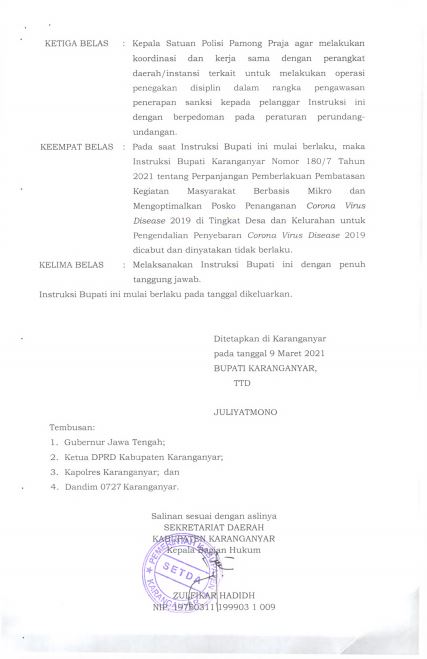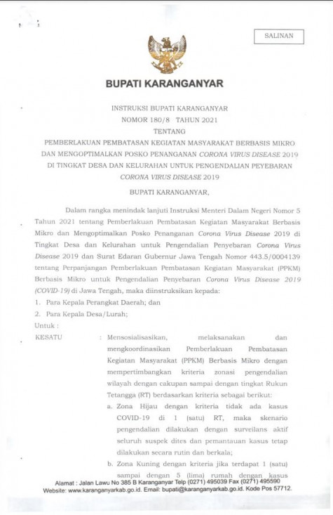 Berdasarkan ketentuan Peraturan Menteri Pendayagunaan Aparatur Negara dan Reformasi Birokrasi Nomor 23 Tahun 2019 tentang Kriteria Penetapan Kebutuhan Pegawai Negari Sipil dan Pelaksanaan Seleksi Calon Pegawai Negeri Sipil Tahun 2019 dan menindaklanjuti Surat Kepala Badan Kepegawaian Negara Selaku Ketua Tim Pelaksana Nasional Pengadaan Calon Pegawai Negeri Sipil Tahun 2019 Nomor K26-30/B6428/X/20.01 tanggal 28 Oktober 2020 perihal Penyampaian Hasil Integrasi Nilai SKD-SKB CPNS Pemerintah Kabupaten Karanganyar Tahun 2019, bersama ini disampaikan hal-hal sebagai berikut :