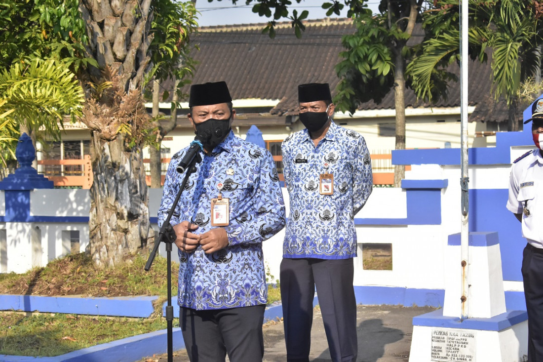 Bupati Juliyatmono saat menyampaikan arahannya pada World Clean Up Day di halaman depan parkir Damkar, Jum’at (22/9)