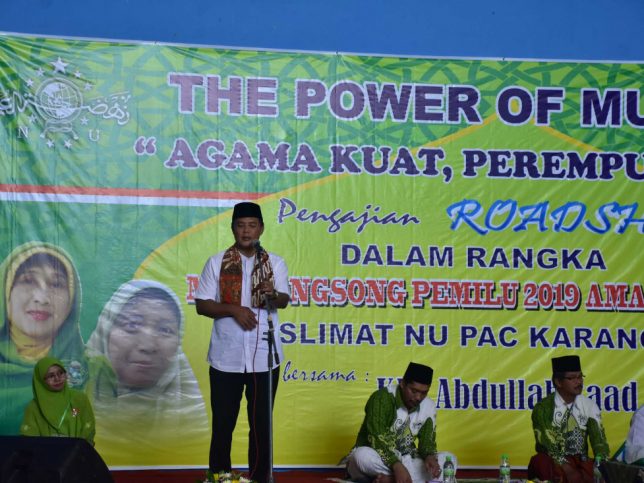 Bupati Karanganyar, Juliyatmono memberikan tauziah pengajian ahad pagi NU di Desa Karangmojo, Kecamatan Tasikmadu