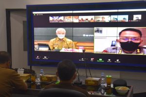 Rapat Koordinasi dengan Gubernur Jawa Tengah mengenai penanganan covid-19 dengan Vidcon di ruang SIC Diskominfo