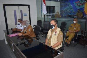 Bupati bersama Forkopimda melaksanakan Vidcon dengan Menko Kemaritiman dan Investasi di ruang SIC Diskominfo Karanganyar