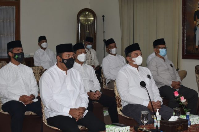 Karanganyar – Bupati Karanganyar, Drs. H. Juliyatmono, MM, bersama jajaran Forkopimda Kabupaten Karanganyar mengikuti zikir dan doa bersama Presiden Republik Indonesia, Ir. H. Joko Widodo, di Ruang Anthurium Rumah Dinas Bupati Karanganyar, Minggu (01/08).