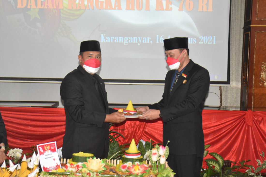 KARANGANYAR – Peringatan HUT ke-76 Kemerdekaan Republik Indonesia ditengah Pandemi Covid-19 hendaknya dijadikan momentum untuk saling menguatkan, berbagi dan membantu diantara kita. Sebab semua masyarakat mengalami dan merasakan dampak yang luar biasa terhadap Covid-19. Dengan saling menguatkan, menambah keimanan, serta berbagi kepada yang membutuhkan dan tetap menjalankan protokol kesehatan merupakan cara terbaik melawan Covid-19. Hal itu disampaikan Bupati Karanganyar, Juliyatmono dalam Malam Tirakatan HUT ke-76 Kemerdekaan RI yang digelar sangat terbatas dengan penerapan prokes di ruang Paripurna DPRD Karanganyar, Senin (16/08)
