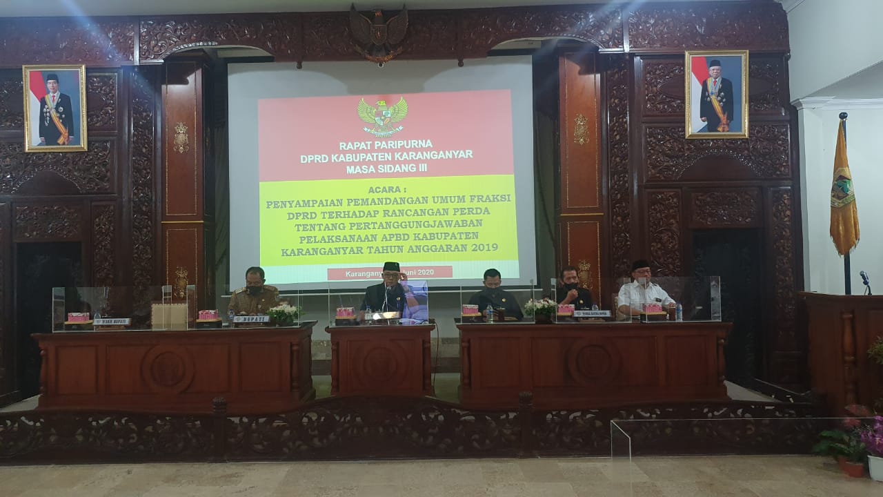 Rapat Penyampaian Tanggapan Bupati Karanganyar Terhadap Pemandangan Umum Fraksi Mengenai Rancangan di Gedung Paripurna DPRD, Selasa (25/09).